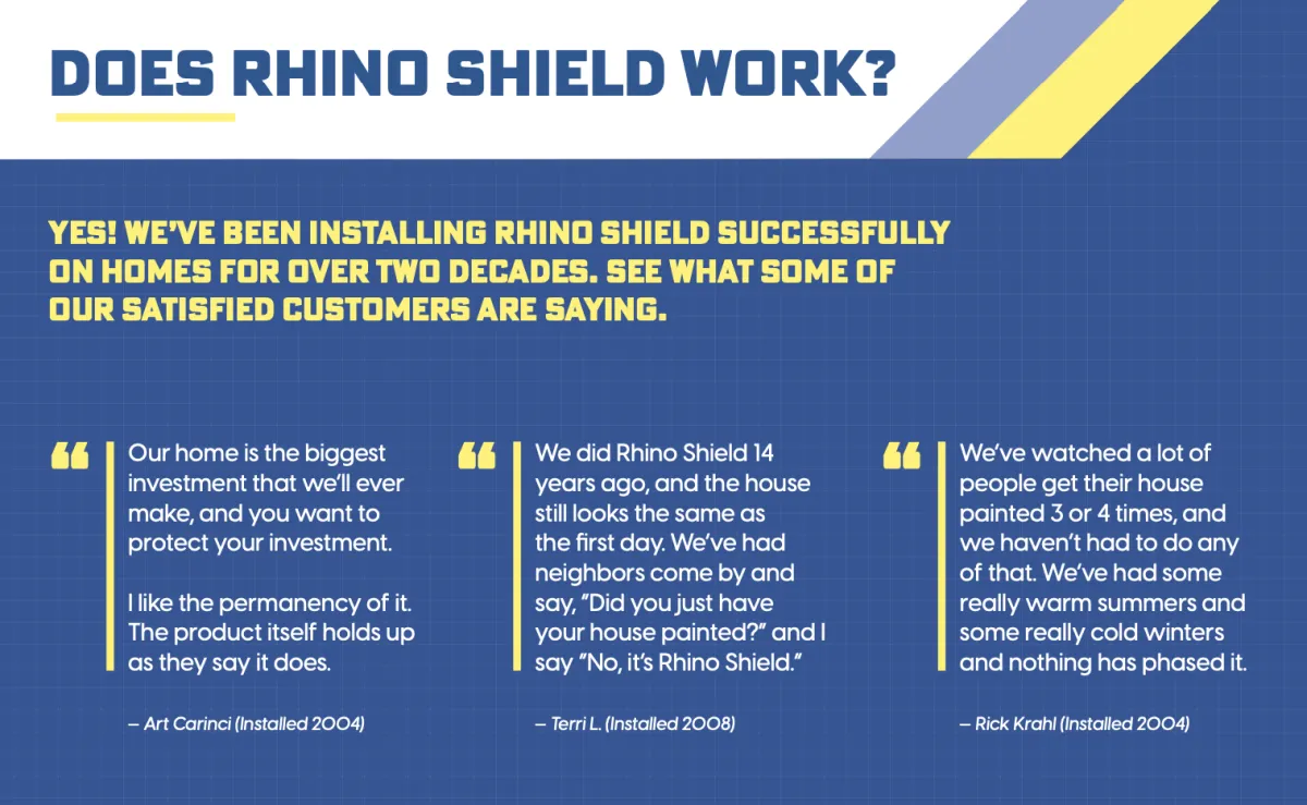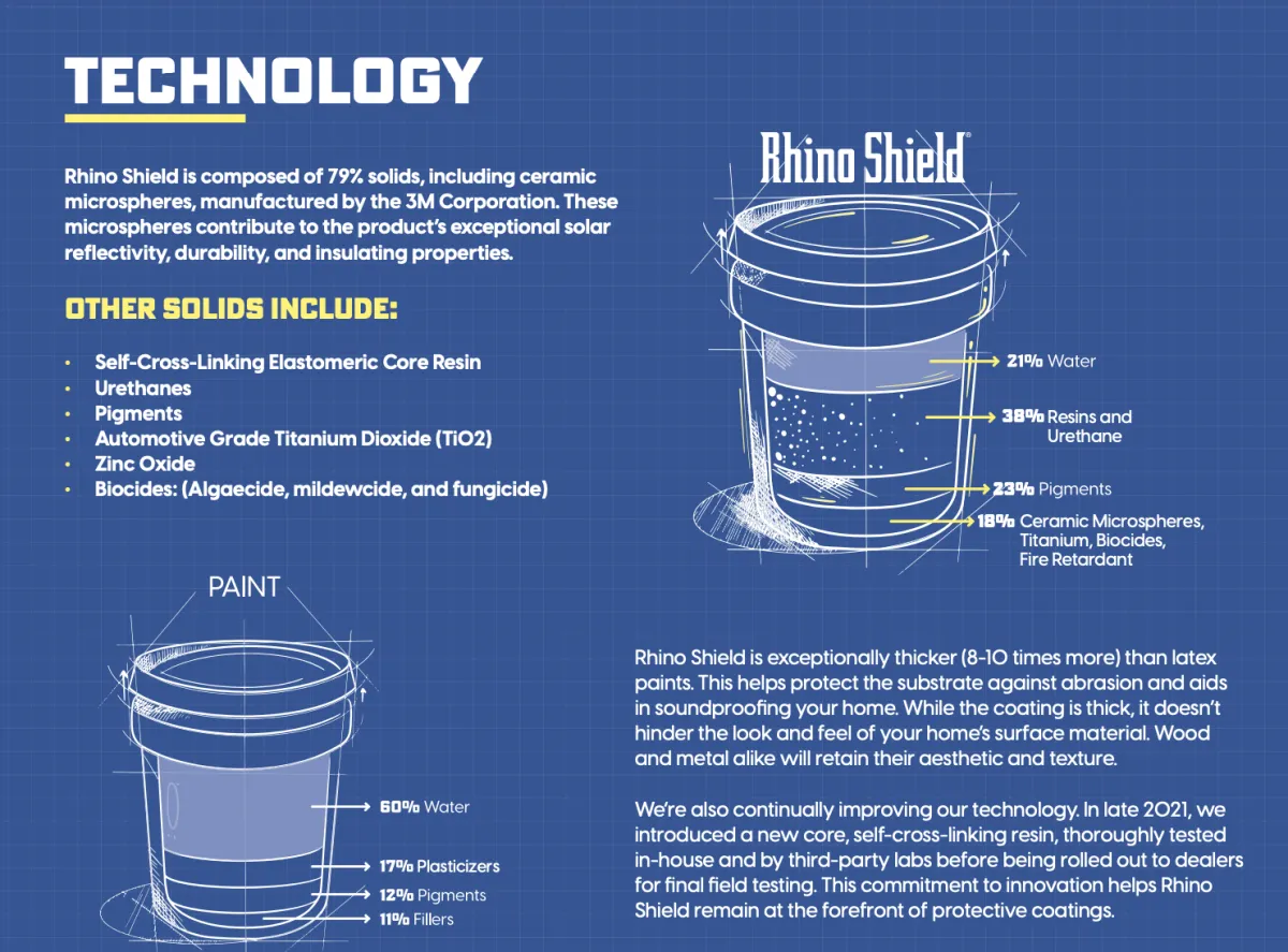 While Rhino Shield offers impressive durability, it comes at a higher cost than traditional paint jobs. On average, you can expect to pay two or two and a half times the cost of a traditional paint job. On average, for a typical, three-bedroom home, a Rhino Shield coatings system installation can range from $13,000 - $18,000, or about $6.50 to $9.00 per square foot.